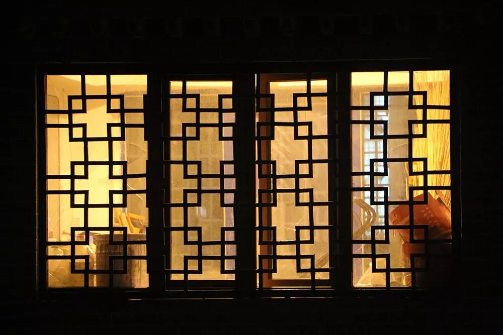鏤空窗和掛落在仿古建筑中起到的是裝飾作用。鏤空窗即在空白墻上做成滿月形狀。外來之景如畫一般鑲嵌“畫框”之中,他人觀鏡中之人猶如一幅動態的肖像畫。觀賞的角度不同,畫框中的畫與人也不同。