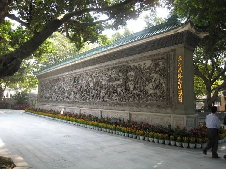在古建筑中,景墻的作用是分隔空間。我國古建筑講究“以小見大”,景墻在其中發揮了重要作用。照壁是景墻的一種,具有擋風,遮蔽視線的作用,墻面若有裝飾則造成對景效果。