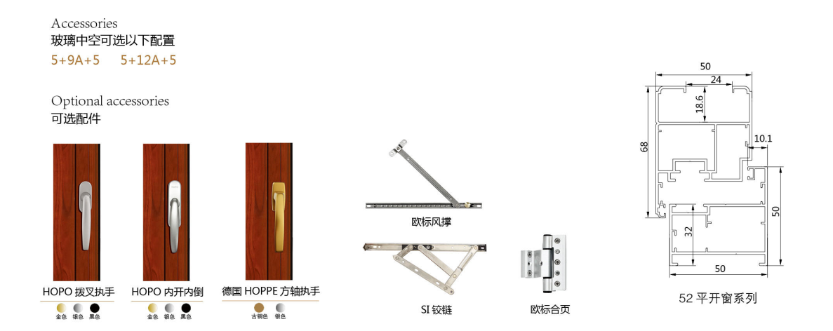 【產品系列】:塞納 【產品性能】:水密性能5級、隔音性能≥35DB、氣密性能6級、抗風壓性能8級、保溫性能K≤2.5 【產品結構】:采用6063-T5鋁材,防水軌隱藏排水結構,四道防撞膠條密封設計,5+20A+5中空玻璃 【五金配件】:標配好博窄邊暗鎖